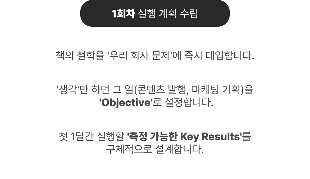 우리는 '해야지' 생각만 하던 브랜드 캠페인 (콘텐츠 운영, 마케팅 계획)을 현장에서 즉시 OKR로 설계합니다.