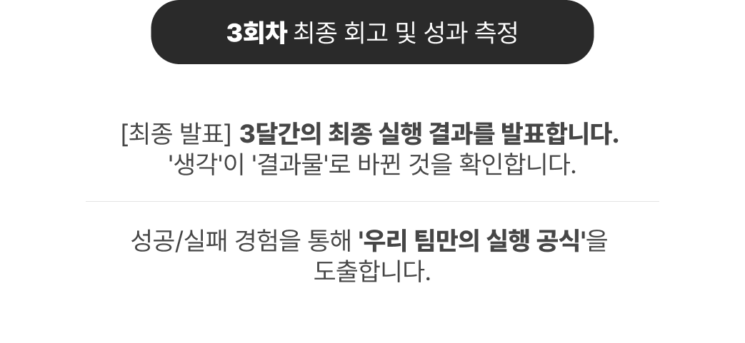 지식 습득이 아닌, 대표님과 매니저님의 '실행력'을 3달동안 책임지는 프로그램입니다.
